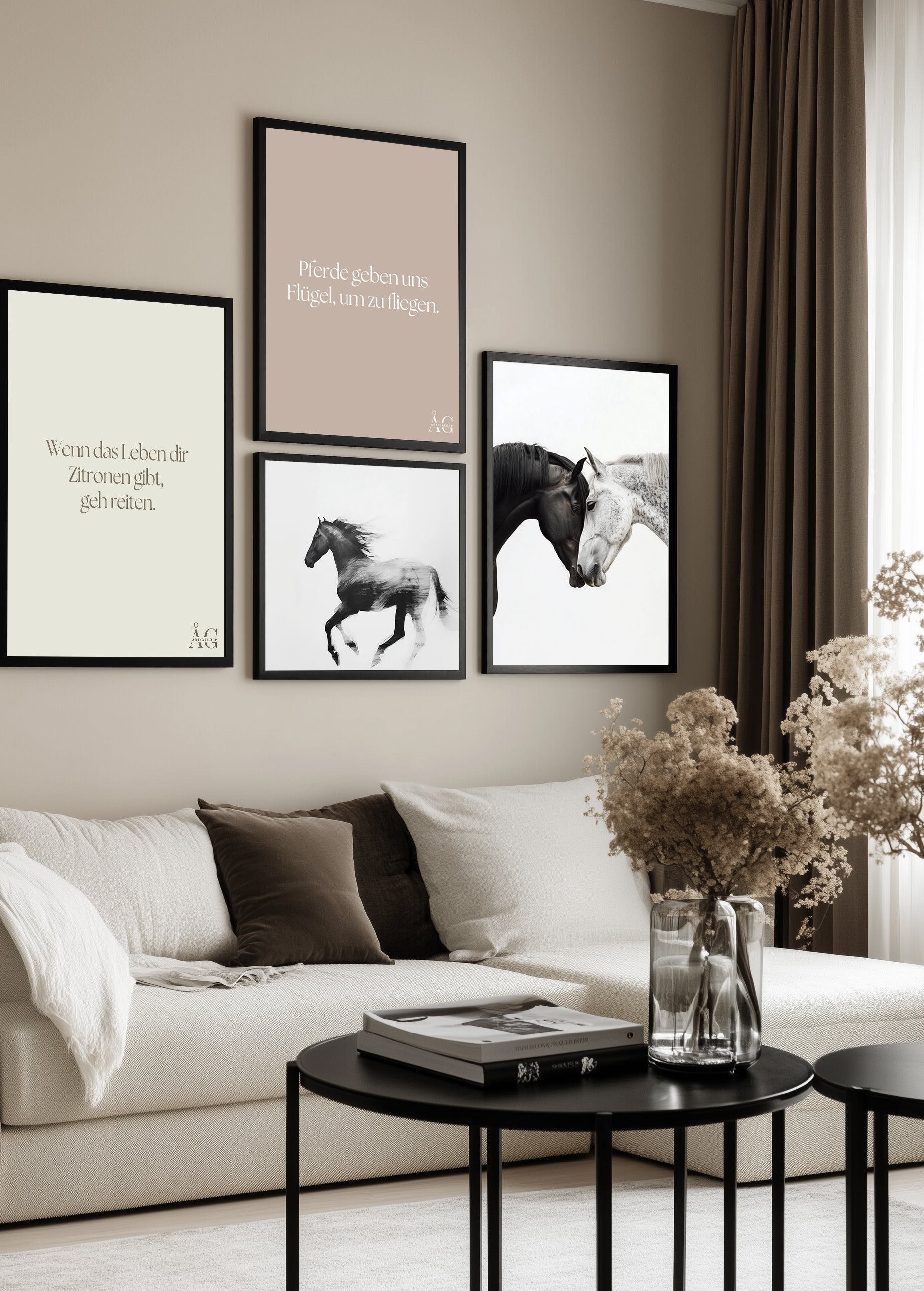 Pferde faszinieren uns – ihre Anmut, ihre Kraft, ihre stille Eleganz. Mit Årtgalopp bringen wir diese Faszination in eine minimalistische Form und direkt an deine Wände. Unsere Prints sind mehr als nur Sprüche – sie spiegeln deine Persönlichkeit wider, erzählen von deiner Liebe zu Pferden und lassen sie Teil deines Zuhauses werden. Reduziert auf das Wesentliche, stilvoll und zeitlos – für alle, die ihre Leidenschaft nicht nur im Herzen tragen, sondern auch in ihrem Zuhause sichtbar machen wollen.